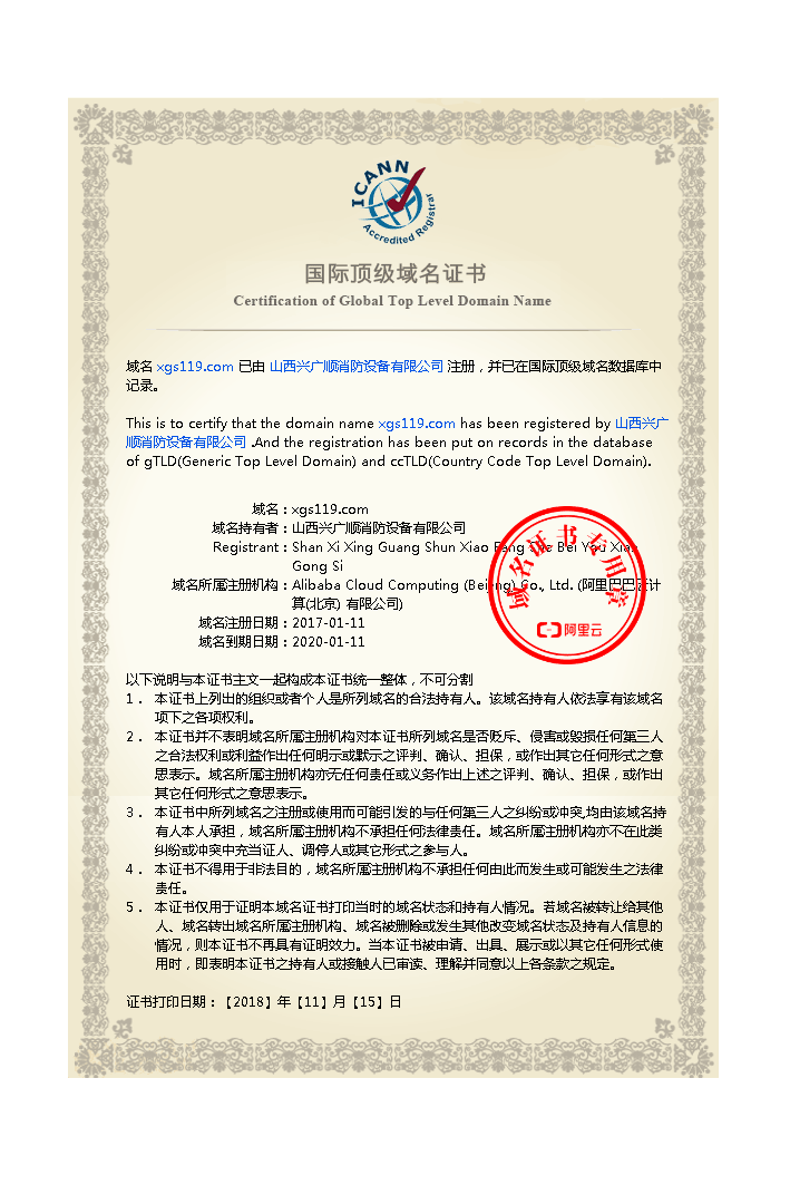 歡迎訪問山西興廣順消防設(shè)備有限公司網(wǎng)站(www.xgs119.com),本公司承諾所銷售的產(chǎn)品均為原廠標(biāo)貨,請(qǐng)您放心購買!